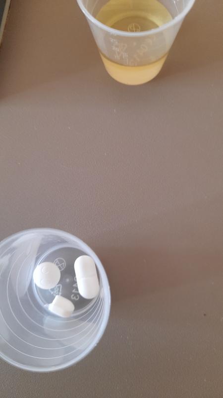 Das Mittagsbecherchen ist da. 800 mg Ibu nicht lieferbar. Man werde kreativ: eine 600er und eine halbe macht 900 mg. Problem nur... es hat sich nichts geändert. Die störrische Patientin nimnt wegen ihrer Nierenerkrankung kein Ibu