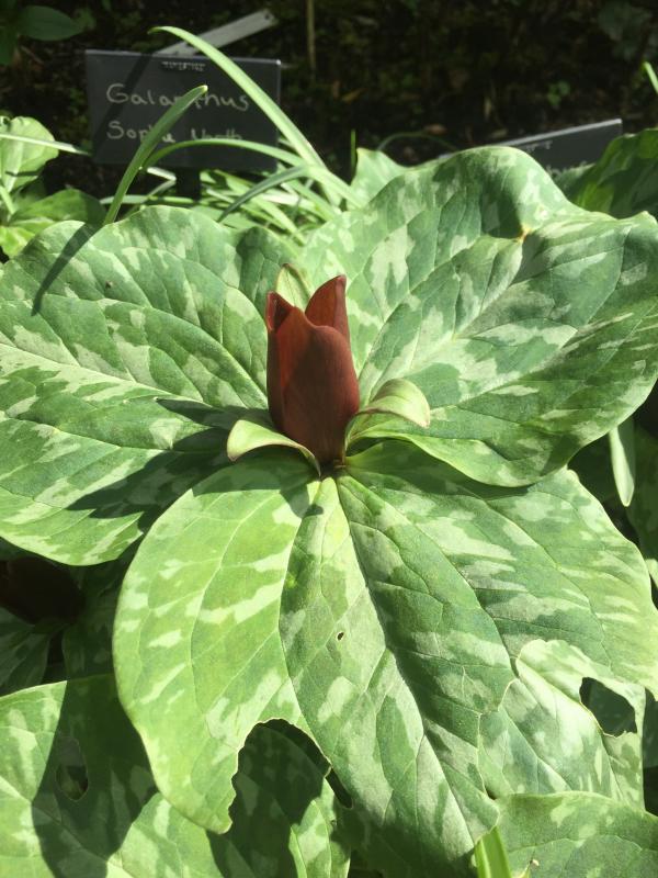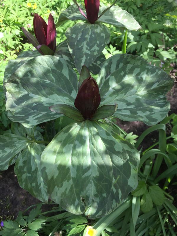 Ich vermute Trillium sulcatum. Aber das weiß bestimmt jemand noch genauer (vlt. auch T. erectum, aber da sind die Blütenblätter schmaler).