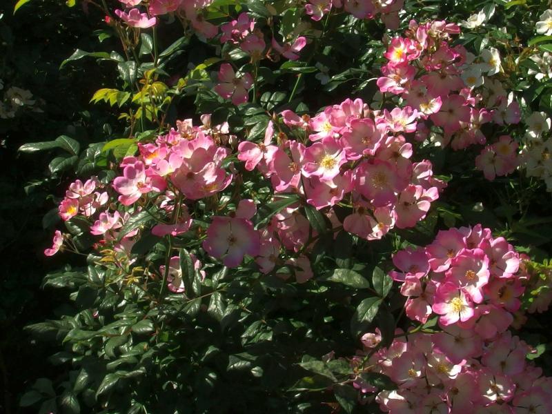 Dieser hat sich in einem Kübel am Pavillon eingenistet, und man sieht, dass wohl 'Ghislaine de Féligonde' und R. multiflora Nana beteiligt waren.