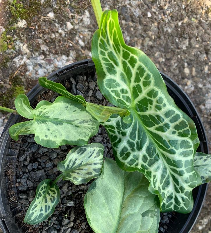 Von Gert Geensen habe ich auch ‚Milk and Honey‘ bekommen. Er hat die Pflanze 2019 in der Normandie gefunden. Auch hier kann ich noch nichts über die Größe sagen. Auf diese Arum bin ich am meisten gespannt.