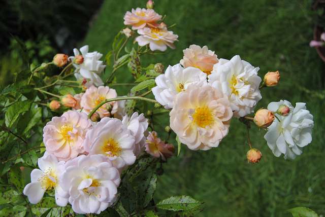 Für wabernden Rosenduft fehlt hier im Moment einfach die Wärme, da muss ich schon die Nase in die Blüte bohren, viele Rosen versprechen aber noch schöne Blüten. Nackte Rosen hab ich auch, war aber auch ungewöhnlich feucht die letzten Wochen. :-\Das Foto von Scented Whisper ist wunderschön und sie sieht soviel üppiger aus als meine. :DLilian Austin
