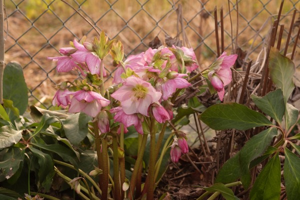 Helleborus thibetanus, schon wieder am verblühen. Die ersten Kospen kamen diesmal schon sehr früh im Januar.