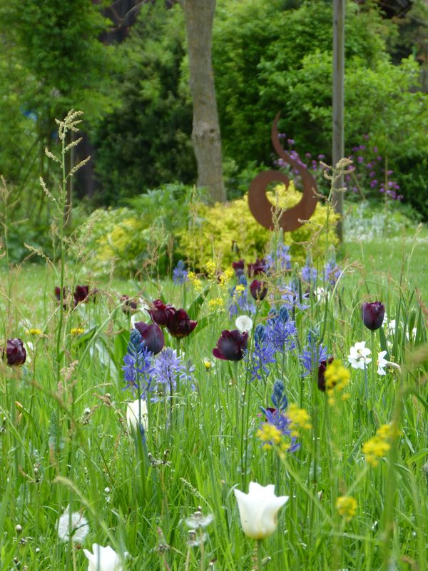 Die Frühblüherwiese macht gerade echt Freude. Die Tulpen reichen den Staffelstab an die Camassia weiter. :D