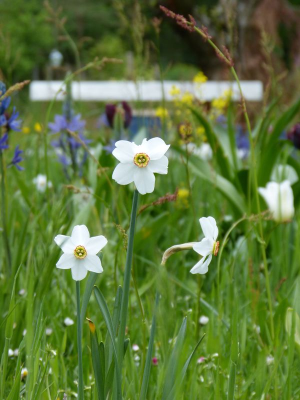 Ich habe Tulpen, Camassien und Narzissen erst im letzten Herbst gesetzt. Kann sein, dass die Blütezeiten dann nächstes Jahr etwas anders aussehen.