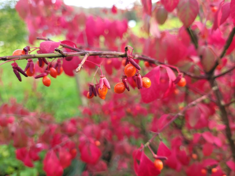 Nun sind die Früchte von Euonymus alatus 'Compactus' besonders auffällig.