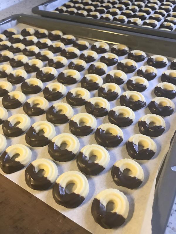 antida, beim anblick deiner perfekten kleinen kunstwerke muß ich immer an adelheids konditorkunst denken, die hat allerdings in der k.u.k. hofbäckerei demel gelernt und ist - noch? - ein geheimtipp ;) wie schafft man diese einheitliche regelmäßigkeit, auch beim tunken?