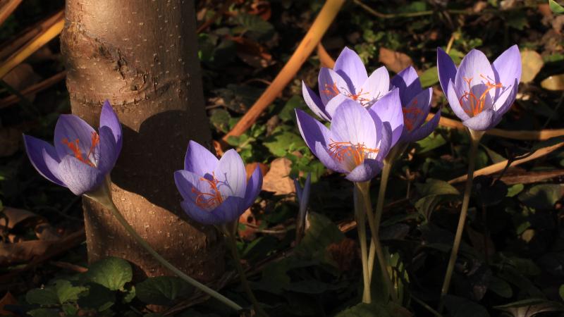 Aus dem großen Garten hatte ich einen schönen Tuff mit dunklen Herbstcrocussen mitgenommen. Die Sorte weiß ich nicht mehr. Könnte C. banaticus sein, für C. kotscha... ist er zu dunkel.
