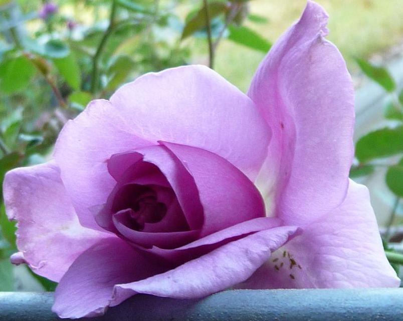 überhaupt ist es morgends fast das Erste was ich mache, zu meinen Rosen flitzen und kucken, wie sie sich entwickelt haben. Und wie ich dann so mit meinem Kaffee dasaß schaute diese, die jüngste der drei vorhin vorgestellten Schwestern zu mir herein, ich fand sie so schön, daß ich sie gleich fotografieren musste, wie sie sich da so auf das Geländer lehnt... manchmal frage ich mich ja, warum ich mich ausgerechnet mit Rosen rumplagen muss, aber da wusste ich es dann wieder.