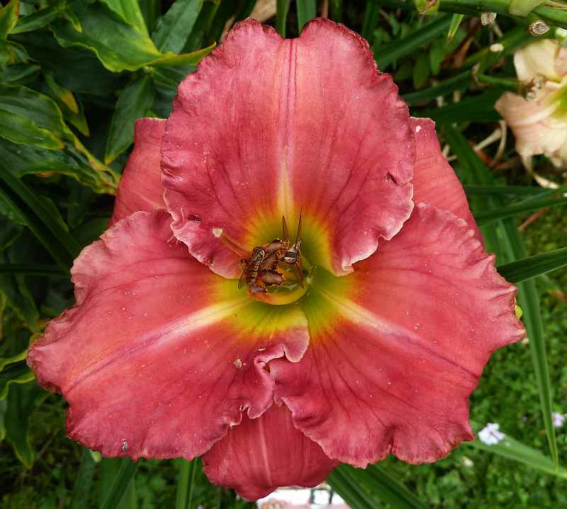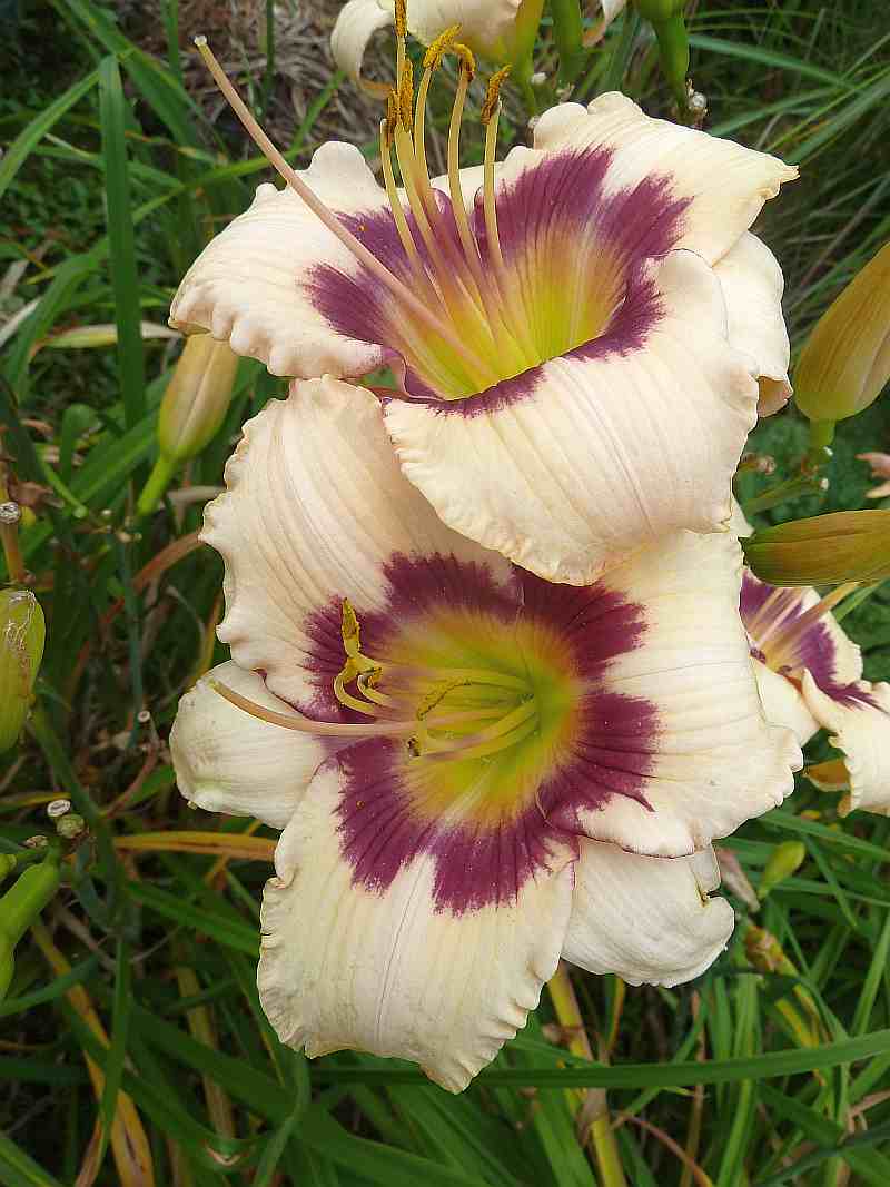 ein paar Geäugte blühten gestern auch, darunter eine bisher doch etwas enttäuschende Sorte Firecracker Parade. Registriert mit 6-fach-Verzweigung und 45 Knospen sowie einer Größe von 15 cm und einer Höhe von ca. 65 cm bringt sie es im dritten Sommer zum ersten mal zu Blütenstängeln von ganzen 30cm Hühe, einem Blütendurchmesser von etwa 10cm und 4-5 Knospen pro Stiel ohne Verzweigung. Ob sich das wohl noch ändert?
