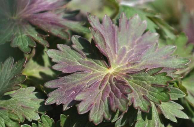 Nach Luna´s gelbem Eyecatcher wieder etwas Buntes. Das Blatt von Geranium wlasslovianum ist ein farbliches Feuerwerk. Ich habe etwa 50 verschiedene Storchschnäbel, aber dieses Blatt gefällt mir neben Phaeum Samobor mit am besten