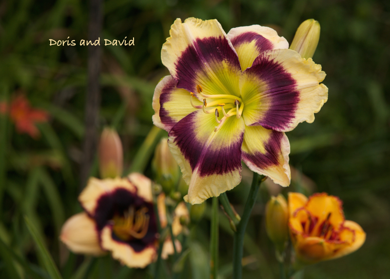 Hier noch etwas für mich eher unerwartetes: Tender Love (spät, großblütig, fast weiß mit rosa Rändern, altmodische Blütenform) und Fizziwig (fuchsiapink und weiß gestreift, lilienförmige Blüten) ergibt so etwas großblütiges spätes Ätherisches :D