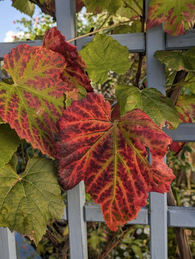Hier gibt es Herbstimpressionen von Hamamelis und Wein.