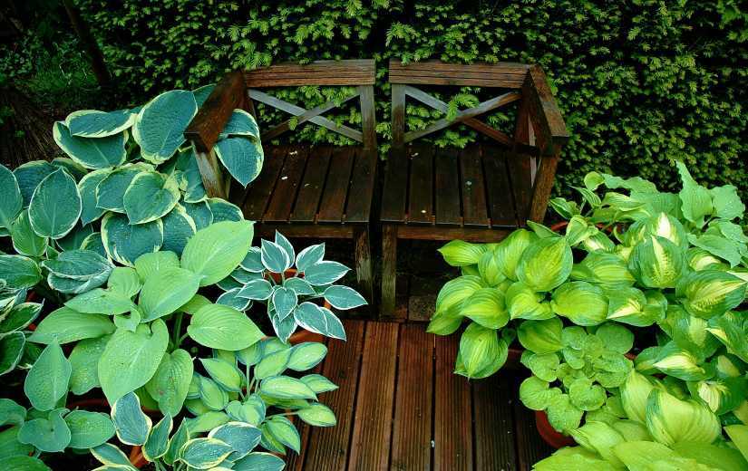 Manchmal ist das Anschleppen der Kissen schon zuviel. :-\Anbei die Bank der anonymen Hostaholiker nach der Begiessung - versteckte Hostas gibt es auch, mittlerweile passen nicht mehr alle auf ein Bild!