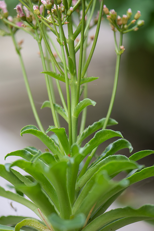 Heute erst habe ich gesehen, dass der Hauptblütenstiel der bereits verblühten Pflanze nicht seitlich zwischen den Blättchen der Rosette entspringt, sondern dass die Mitte der Rosette sich zum Blütenstängel entwickelt hat. Die Rosette kann also nicht weiter wachsen.Will/kann sie weiterleben?