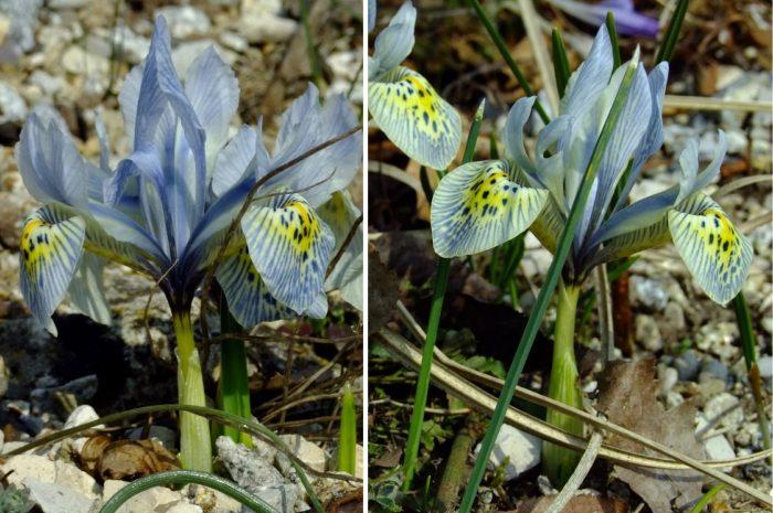 iris 'frank elder' (li.) + 'katherin hodgkin' (re.) im direkten vergleich. würde ich nur die eine sorte in einem garten sehen, hätte ich durchaus probleme sie sicher auseinander halten zu können. die 'hodgkin' hat mehr gelb in der lippe (wie nennt man das blütenteil bei iris?), wirkt dadurch etwas blasser (grünstichig-gelb) während die 'elder' mehr blauanteile besitzt.