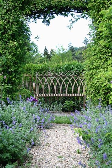 Hier ein Ausschnitt aus meinem Rosenlaubengang incl. neuer Gartenbank. Der Garten macht mich noch arm