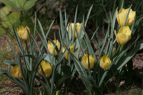 'Queen of Night' ist eine fantastische Tulpe, nicht? 'Jan Reus' übrigens auch. Die fast schwarze Blüte wirkt wohl einfach auf dem Foto so hell, dass sie so ins Rötliche zu gehen scheint. Heute habe ich im Garten einer Freundin Tulipa batalinii 'Bright Gem' entdeckt. Die gefällt mir mit ihren schwefelgelben Blüten zu den graugrünen Blättern ausgesprochen gut. Außerdem ist sie so hübsch zierlich.