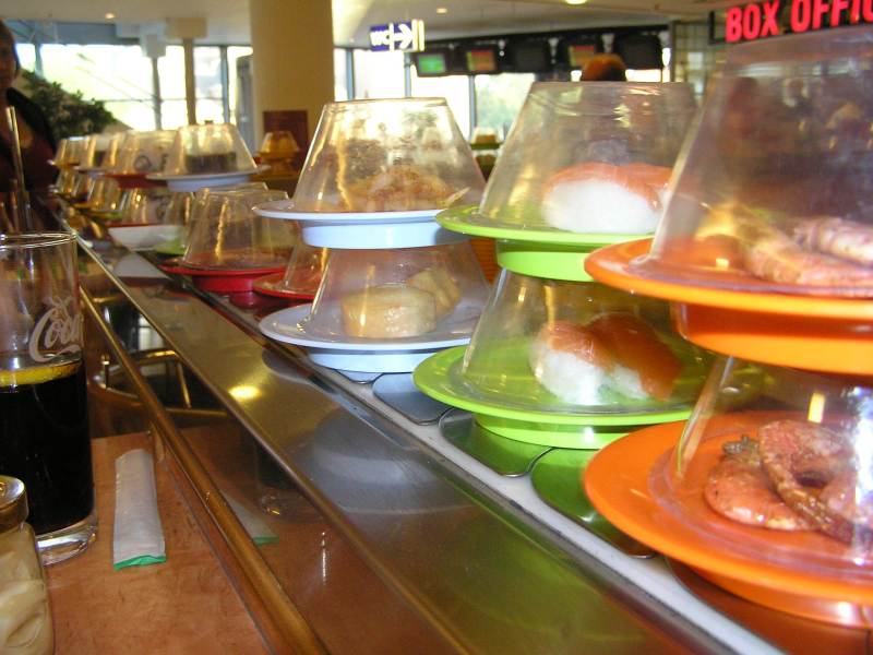 (zutaten sind, wen es interessiert, im thread "käse-wurst-salat" zu finden) dazu frisches brot und butter.gestern dann sushi vom laufband!