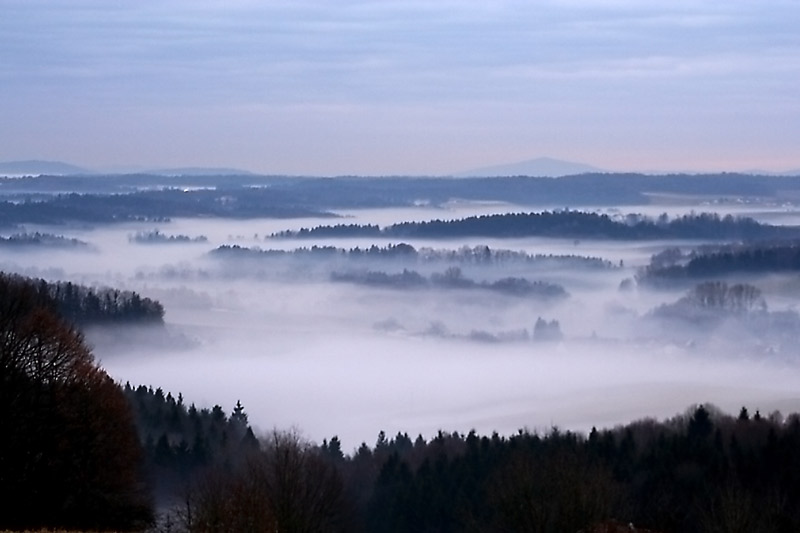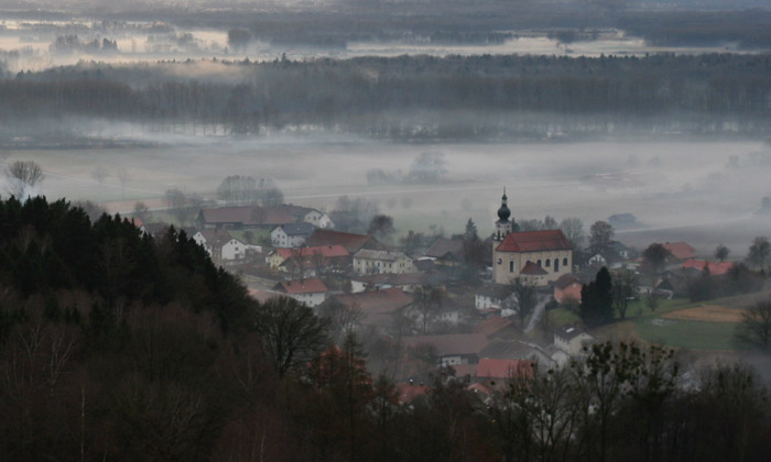 Katrin, deine Hamamelis vor blauem Himmel vermitteln Frühlingsstimmung.Bei uns ist zur Zeit eher Nebel angesagt. Hier mein Dorf von oben gesehen, eingepackt in Watte.
