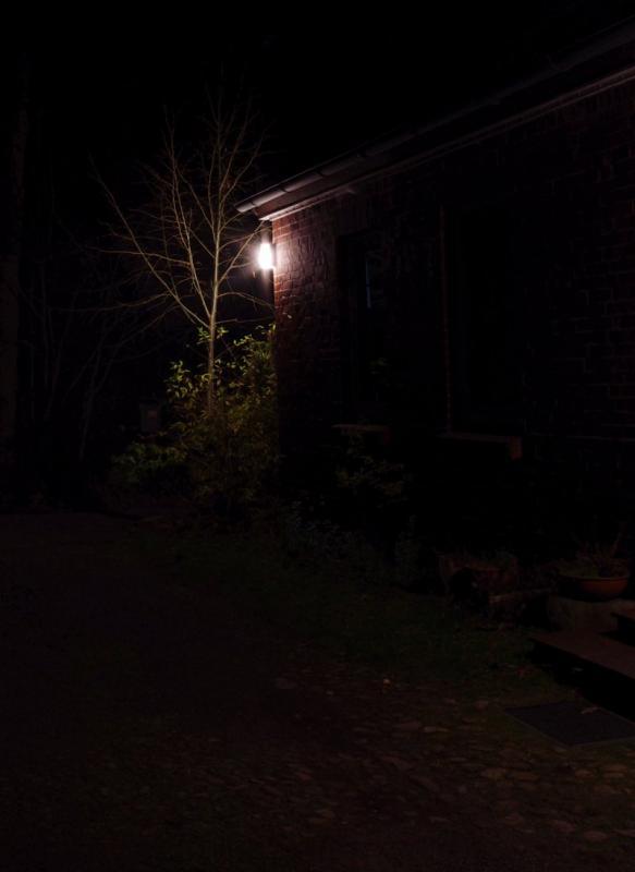 Die Kx hat sicher andere Knöpfchen als meine K20D. Ich würde die Belichtungskorrektur nicht auf -1.3 stellen, sondern auf 0 oder sogar auf +0.3 oder 0.7. Dann dürften die jetzt sehr dunklen Bereiche heller werden - die Lichtquelle und ihr unmittelbares Umfeld aber auch.Ich mache es oft so, dass ich in solchen Situationen einmal mit Av fotografiere, mir die Werte merke und dann auf den manuellen Modus umschalte. War das Bild bei 5s zu dunkel, stelle ich manuell 10s oder 15s ein. So taste ich mich ran, wenn ich Zeit habe.Ich habe gesehen, dass Du Kontrast auf hart und Schärfe auf hart eingestellt hast, beides würde ich auf normal oder gering stellen und erst bei der EBV meinen Wünschen entsprechend anlegen. Es gibt Bilder, denen zuviel Kontrast und Schärfe nicht gut tun oder wo man nur in ausgewählten Bereichen nachschärfen möchte - z.B. bei einem Blütenaquarell nur an den fokussierten Stellen. Schärfen macht auch Rauschen.Die Motivprogramm Deiner Kamera solltest Du erstmal nicht nutzen, wenn Du sie kennenlernen möchtest.