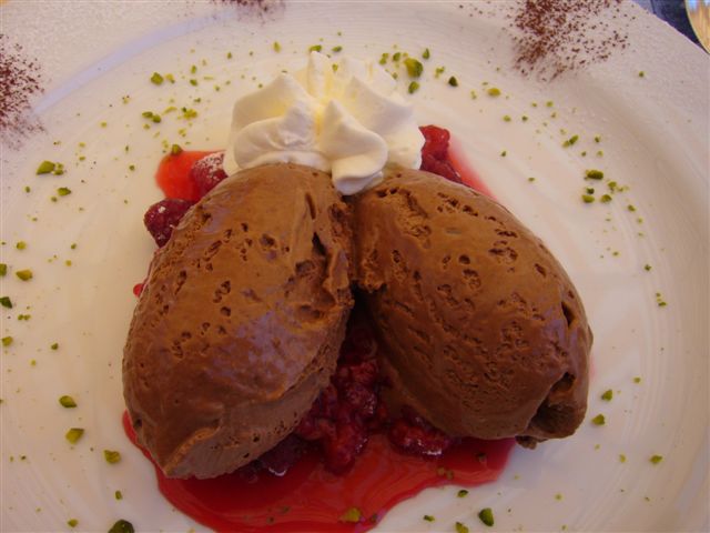 Heute war ich in St.Gallen, mit einer Freundin zum essen, es gab:bunter BlattsalatGemüsecreme-Suppegebratene Rotbrasse auf Spinat mit Salzkartoffelndunkles Schokoladenmousse mit Himbeeren