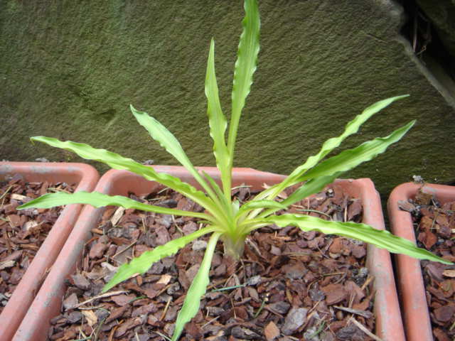 Hosta 'Alligator Shoes' hatte ich beim letzten Röntgen noch in der Tasche gehabt und vergessen raus zu nehmen ,daher der etwas eigenartige Austrieb....