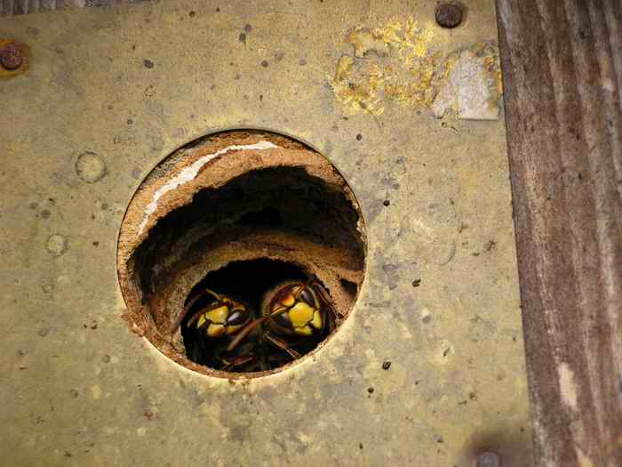 Das ist Volucella zonaria.Da ca. hornissengroß ist sie auch mehr rotgelb wie Hornissen. die kleineren sind oft scharz-gelb wie Wespen.Hatte ich früher auch öfters im Garten, aber seit Jahren schon nicht mehr.Viele GrüßeWolfgang