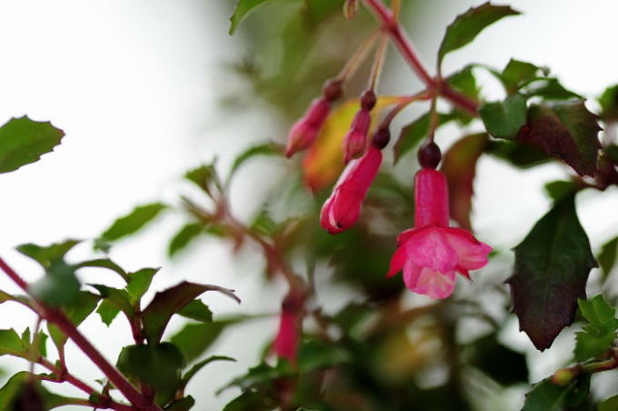 Eine besonders schöne Herbstfärbung hat Fuchsia microphylla, auch sie soll bedingt winterhart sein. Einen Steckling habe ich...Eine weitere kleinblütige Fuchsienart, Fuchsia thymifolia blüht noch nicht.