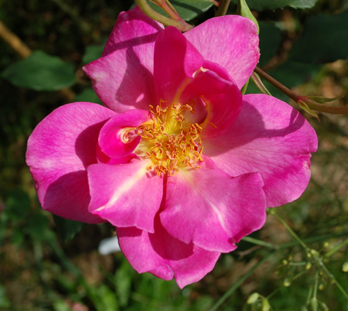 Wenn die jetzt dunkle Staubgefässe hätte, würde ich sie fast mit meinem unbekannten Stehaufmännchen (Seite 8 ) vergleichen...Aber nur fastStopp! Halt! Wer kennt diese Rose?Wir haben sie als Gräfin Ada Bredow erhalten: