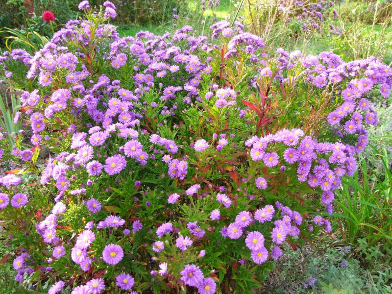 In den letzten Tagen sind noch so einige Astern, die ich hier und da stehen hatte, aufgeblüht und siehe da, beide wären für das Beet geeignet, so finde ich.