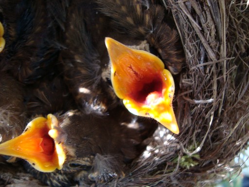 Den jungen Drosseln geht es gut, wenn der "Essen auf Flügeln"-Service doch nur nicht immer so lange brauchen würde...