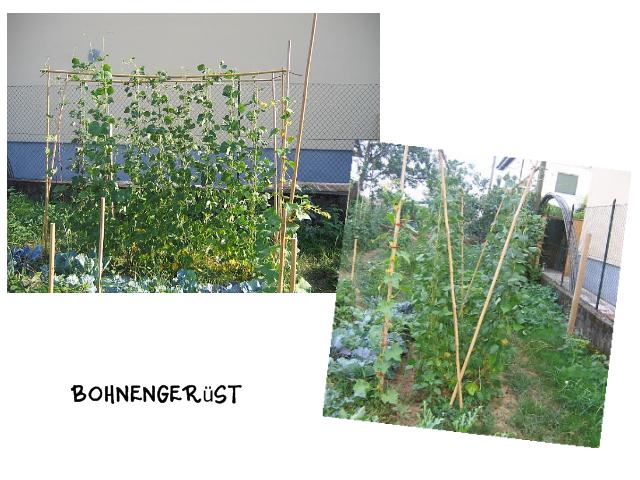 Da habe ich dieses Jahr so ein feines Bohnengerüst gebastelt, und dachte, muß ich doch mal ein Foto reinstellen
