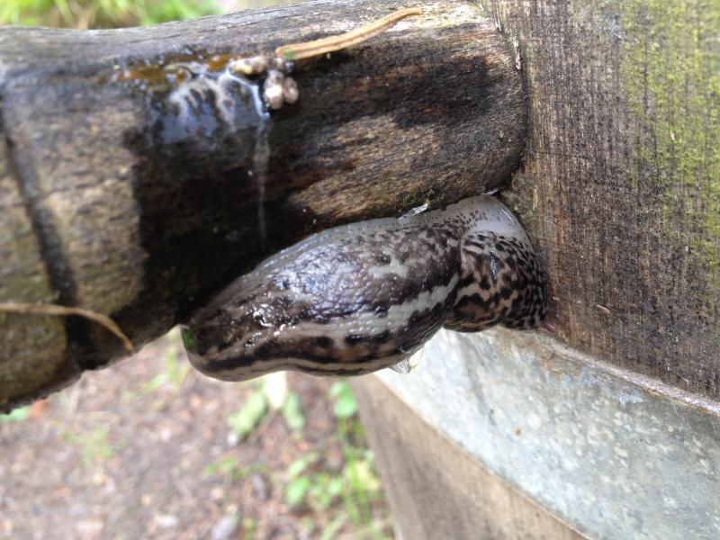 ;DIch hatte auch schon einmal zwei Tigerschnegel nachts auf dem Küchenboden rumschleimen. Sie sind einfach im Dunklen, als ich frühsommers auf der Terrasse saß, durch die offene Terrassentür reinmarschiert reingeschleimt. Ich hatte zwei Tage zuvor Holunderblüten für Holundersirup angesetzt und die benutzten Holunderblütenreste noch in einer Schale in der Küche liegen. Der Duft der welkenden Holunderblüten war wohl unwiderstehlich.Tigerschnegel habe ich anscheinend einige in irgendwelchen Ritzen/Verstecken auf der Terrasse wohnen.Nachts sind sie dann unterwegs...Offensichtlich sitzen sie in irgendwelchen Verstecken/Ritzen auf der Terrasse und wandern nachts los.Heute Morgen bekam ich zugegebenermaßen einen kleinen Schreck, als ich mir einen Kaffee machen wollte.![]()