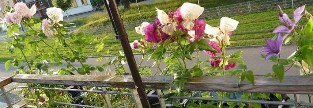 wollt Euch eigentlich noch bei den Junirosen oder Rosenbegleitern die schöne Farbkombination von Florence Delattre mit Purple Lodge zeigen, aber ich krieg es nicht fotografiert, zu viele Teebeutel (und häßliche Stützen von Klemmmarkise) Tja, man muß Prioritäten setzen, hätte es machen sollen wie der alte DocKrüger: Im Garten alles wie geplant und züchten in einem Extra-Garten. Jetzt hilft nur noch selektiv gucken