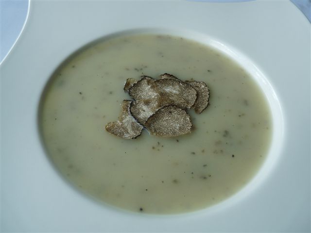 von gestern war noch ein halber Trüffel übrig ;DWeisswein-Kartoffelsuppe mit Trüffel