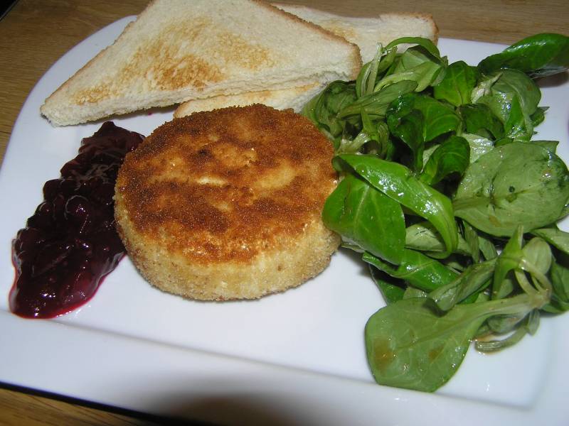 heute gabs gebackenen camembert mit eingekochten cranberries, toast und ackersalat.