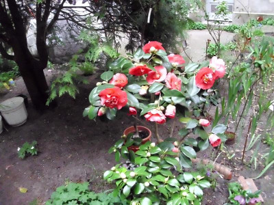 Meine 2 Kamelien (die einzigen übrig gebliebenen von vielen) stehen seit Jahren auf der Westseite im Garten. Sie sind halt da. Habe mich nicht mehr groß gekümmert, sind auch noch recht klein. Wasser erhalten sie vom Regenfallrohr, an das ein Drainagerohr angeschlossen ist, das quer über das Beet läuft. Ist mit allem Möglichen Kleinkram zugewachsen. Jetzt haben sie plötzlich Knospen, :o ganz viele die Debbie und die Alba hat 2 - die hat noch nie geblüht.