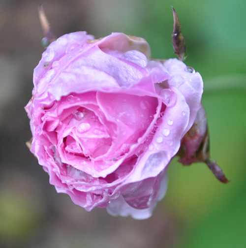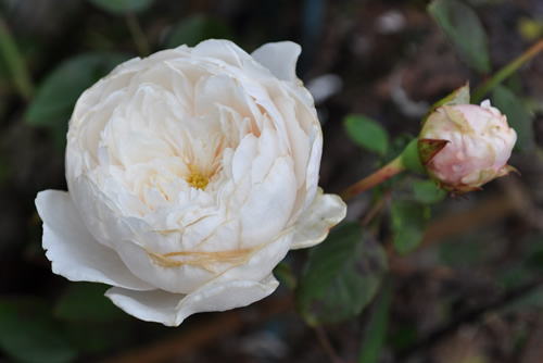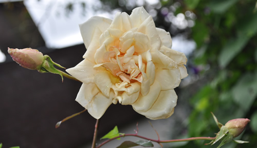 Nachdem Mme Ernest Calvat letztes Jahr wie eine Rakete mit über 2m Trieben ab ging, musste sie im Frühling bei 2 cm wieder neu beginnen. Lange zögerte sie mit dem Austrieb. Ende Sommer packte sie es langsam wieder, die Triebe sind nun auf 1,2, eine gute Grösse um die zwar nicht gerade überschwänglichen, aber langsam wieder hervorkommende Blüten anzugucken. Ich hoffe, sie reift dieses Jahr etwas besser aus.