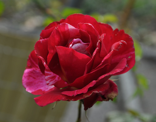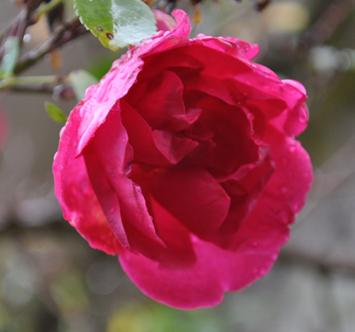 Cerise Bouquet, obwohl eigentlich einmalblühend, zeigte immer wieder einen schönen Blütenschub und hier noch eine der letzten Blüten.Die Kaskade der Hagebutten hatte ich ja im Hagebuttenfaden gezeigt.