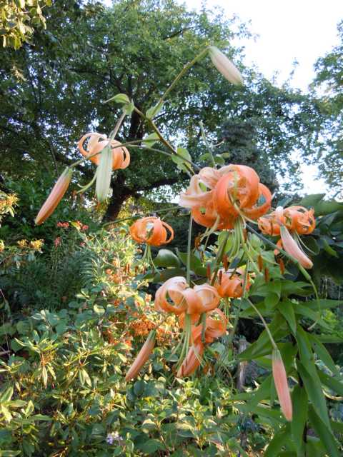Aber natürlich hab ich auch was in Orange. Lilium henryi, im Hintergrund Lilium tigrinum in einem anderen Orangeton.