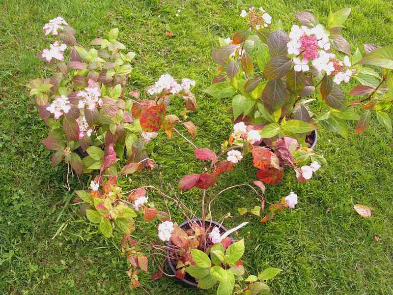 Ich bin leider nicht so zufrieden. :-\Sogar auf dem zugegebenerweise schlechten Foto sieht man den Unterschied.'Yae no Amacha' (unten) habe ich vor zwei Jahren in Herbst ebenso wie 'Akabe Yama' (oben links) und 'Hatsuhime' (oben rechts) erworben. Diese beiden haben letztes Jahr schon die ersten Blüten angesetzt und zeigen einen gesunden Wuchs.Bei 'Yae no Amacha' war Blüte leider letztes Jahr Fehlanzeige, der Wuchs ist gakelig und auch das Laub ist verkrüppelt.