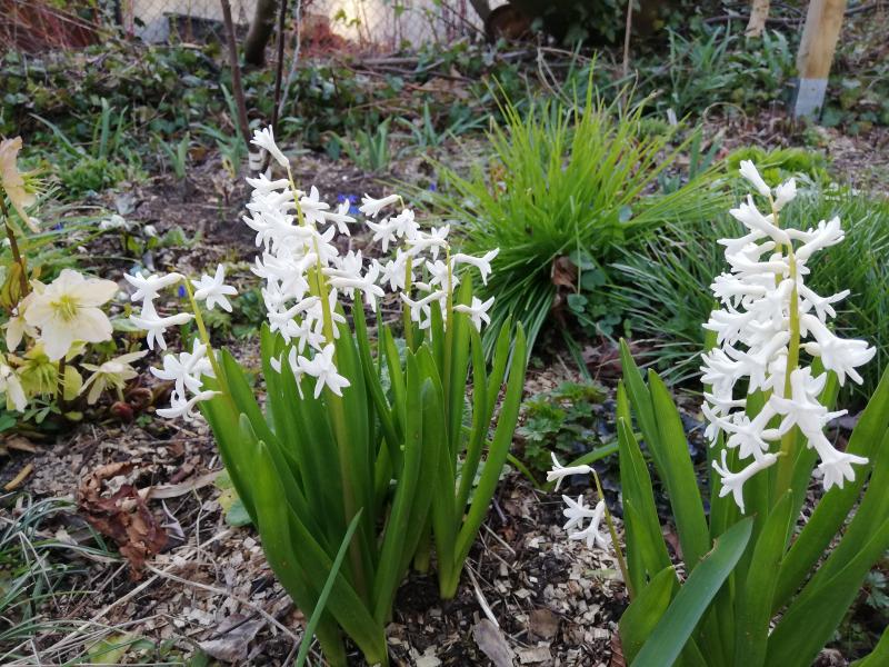 Die Hyazinthen habe ich alle nicht abgedeckt, weder die schönen Axelhyazinthen noch die dicken Holländer - mal sehen... :-\ Sie stehen relativ geschützt. Von Isatis' blauen hat sich nur eine erhalten. Ich hoffe, dass die Samen macht.