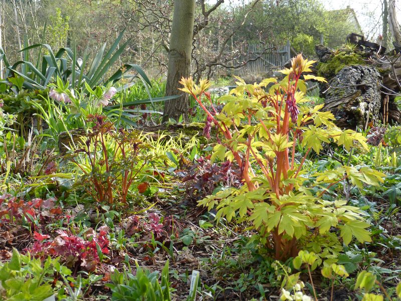 Die Dicentras schaffen eine schöne Lichtstimmung.Sie scheinen sich an dem Platz sehr wohl zu fühlen,was man an dem kraftvollem Austrieb sieht.