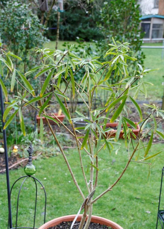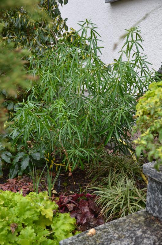 Sie steht direkt neben der Treppe zur Haustür und bekommt etwas Wärme vom dahinter liegenden Heizungskeller (Fenster etwas offen) ab. Vielleicht gefällt ihr das besonders gut? In diesem Jahr war es ja recht feucht, sonst sähe sie vielleicht auch schlechter aus. Im Topf ist es ja eher mal zwischendurch trocken.