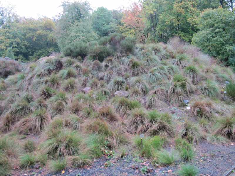Ich habe am WE und gestern an Deinen exzentrischen Beet denken müssen, als ich Zwiebeln verbuddelt habe. Wäre es extravagant genug, mit Blumenzwiebeln und -knollen in dem Beet zu zeichnen? Ich meine nicht die Blumen-Teppiche, die man aus den Ausstellungen, Parks oder von Parterre-Anlagen kennt, sondern Linien, also wirklich nur eine Zwiebel hinter der anderen gesetzt. Ich stelle mir grade eine Solche vor, z.B. mit purpurroten Allium gezeichnet, die sich durch die Beet-Fläche, wie ein – auf ein Strich reduziertes – Fluß durch eine hügelige Landschaft schlängelt. Zum Beispiel durch Festuca-'Vorgebirge'. Jedenfalls: Je größer der Höhenunterschied, desto spannender. ... mindestens in meinen AugenIdealerweise sollten nicht nur die Pflanzen selbst eine exzentrische Wirkung haben, sondern auch die Gestaltung (Fläche, Form) ...