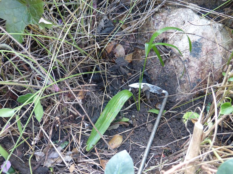 Diese Trachycarpus fortunei hat sich einen Platz in diesem Faden verdient. Ich weiß gar nicht mehr, wie lange es her ist. Sicher mehr als 6 Jahre, da kaufte ich ein paar Sämlinge in der Bucht. Unter anderem diesen pflanzte ich aus. Er wurde von Vinca und Herbstanemonen überwachsen. Heute muss ich schon zweimal hinschauen, als er beim Roden dieses Dickichts wieder auftauchte. Er hat sich über all die Jahre gehalten, wenn er auch so gut wie nicht gewachsen ist.