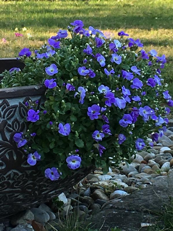 In der Umgebung wachsen "Normalblaue", die säen sich aus, das sind oft die allerbesten Pflanzen, die sich den Platz selbst gesucht haben. Man sollte sie als Sorte benennen, dummer- und seltsamerweise wachsen Stecklinge davon oft nicht gescheit.