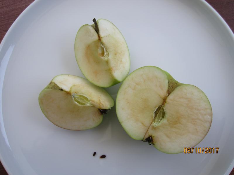 Kerne habe ich nicht durchgeschnitten. Die Kerngehäuse sind schwer zugänglich und es sind nur sehr wenige kleine platte Kerne vorhanden und manchmal ein weißer mehliger Belag.