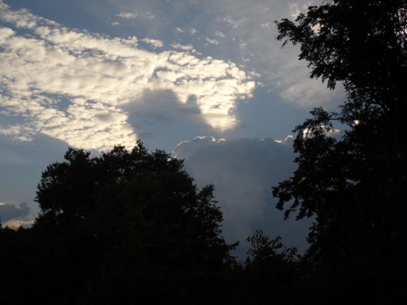 Gestern ist ein Gewitter an uns vorbei gezogen. Dessen aufziehende Vorboten sahen für mich eigentümlich aus. Sind auf den leuchtend angestrahlten Wolken Schatten durch niedriger ziehende Wolken? Vermute ich da richtig?