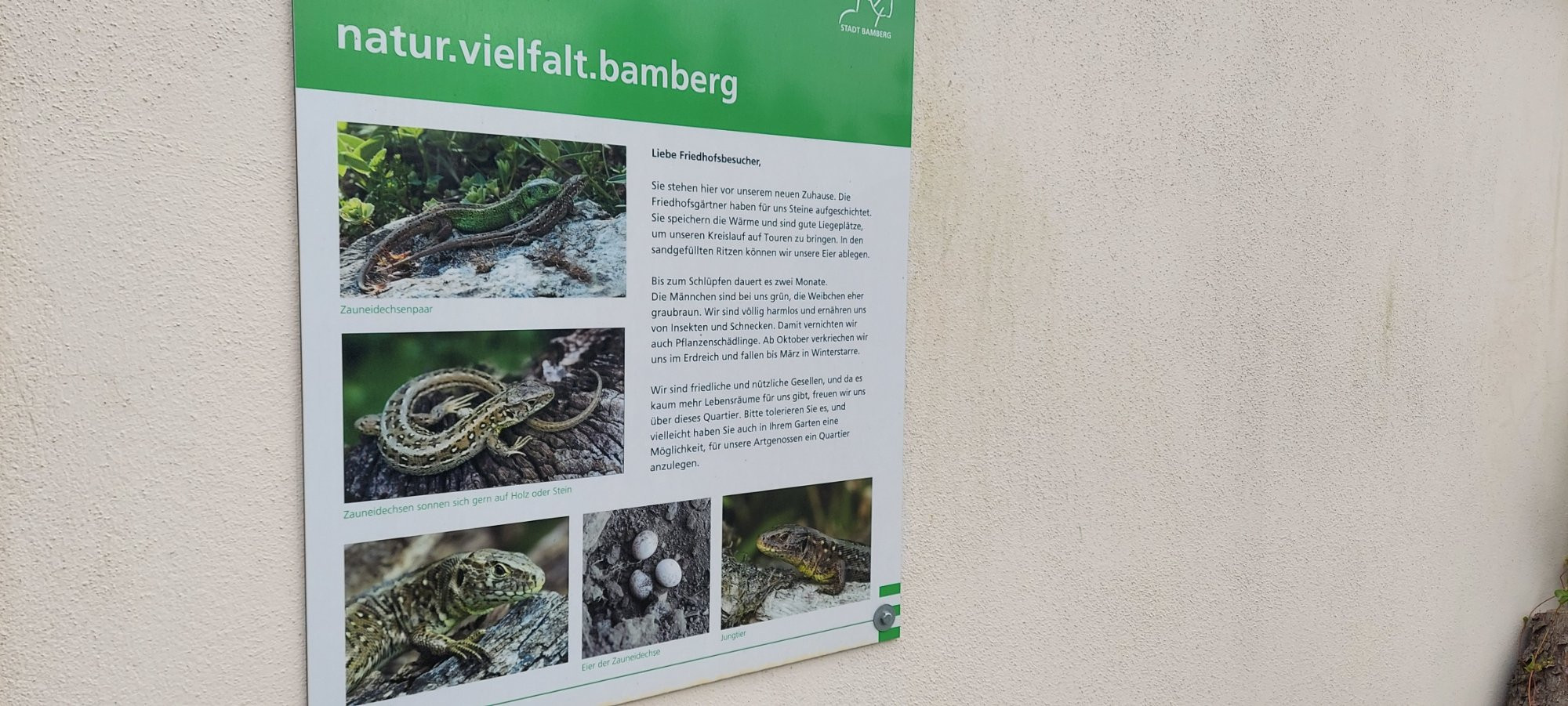Und als jüngere Friedhofbesuch: aus Bamberg. Ein bisschen Naturschutz und Aufklärungsarbeit. Finde ich originell und gut.
